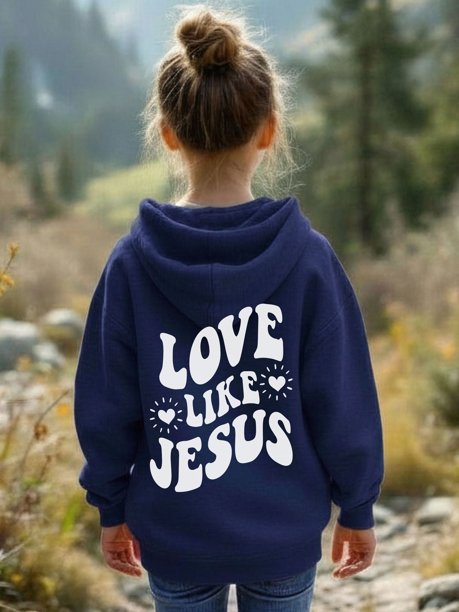Dress your Little One Trendy and spread a message of Faith with this cute Kids Love Like Jesus Hoodie! This adorable youth Christian Hoodie Sweatshirt is super comfy! Size up for a Trendy Oversized Look! SHIPS FREE!
